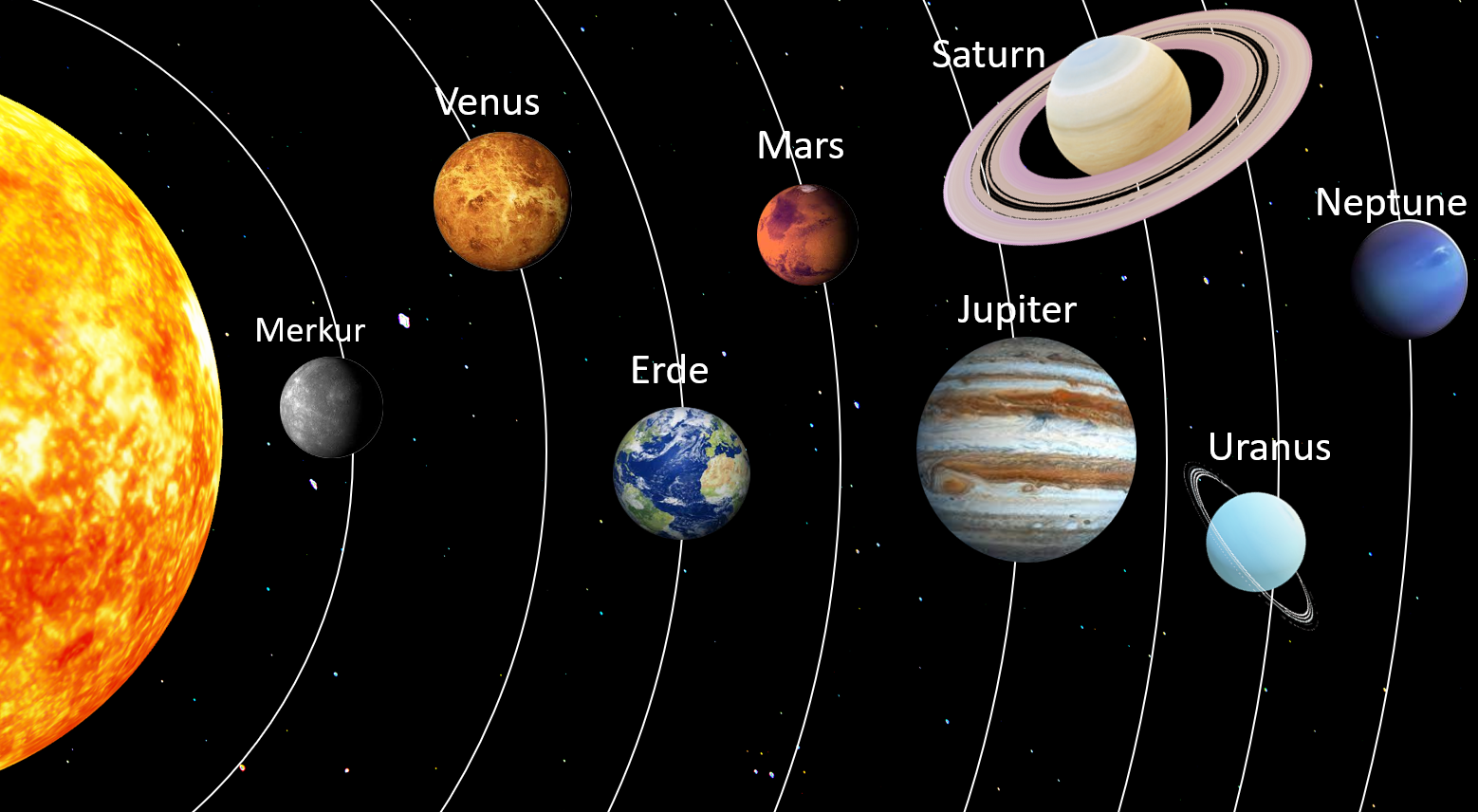Die Planeten bewegen sich auf elliptischen Bahnen um die Sonne, wobei die Umlaufzeiten von wenigen Monaten (Merkur) bis zu mehreren Hundert Jahren (Neptun) reichen.